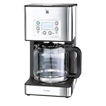 Die Kaffeemaschine WMF Skyline garantiert ein köstliches Aroma. Damit der Kaffee morgens lecker duftet, wenn der Wecker klingelt, ist die Skyline mit einer Timer-Funktion ausgestattet. Die Aroma-Funktion sorgt für individuellen Kaffeegenuss. Alle Tasten sind beleuchtet und rund um das digitale LC-Display angeordnet. Natürlich ist der Wassertank abnehmbar und hat außenliegend auf beiden Seiten eine Wasserstandsanzeige. Die Aromaglaskanne fasst zehn Tassen und steht auf einer Warmhalteplatte mit Abschaltautomatik. Der Filtereinsatz ist herausnehmbar und mit Tropfstopp sowie Überlaufsicherung ausgestattet. Das Gehäusematerial der Skyline besteht teilweise aus Cromargan-Edelstahl, rostfrei 18/10.